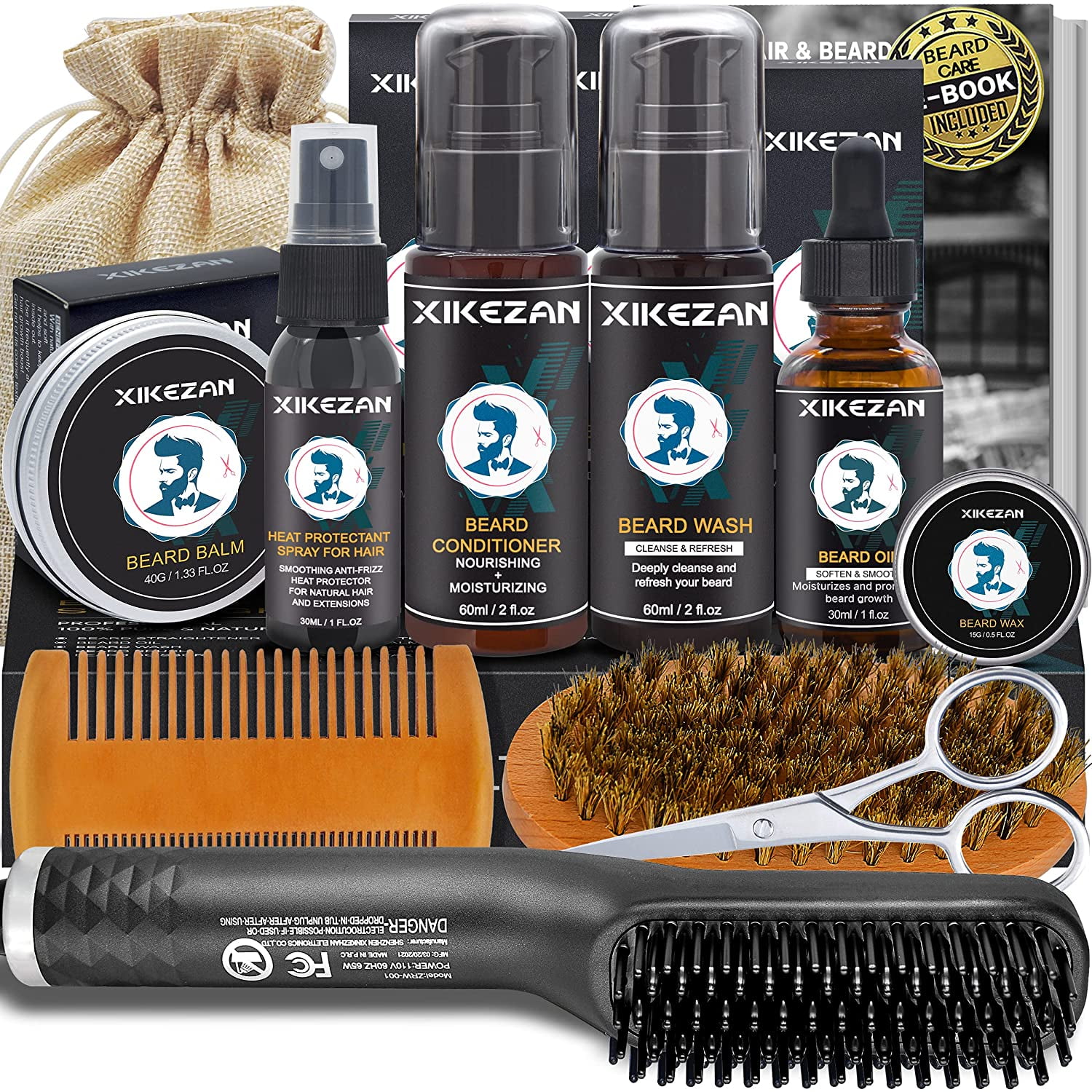 Xikezan Beard Straightener Kit Beard Growth Grooming Kit W Beard Straightener Heat Protectant Spray Beard Wash Shampoo Conditioner Oil Balm Wax Comb Brush Scissor Bag E Book Walmart Com